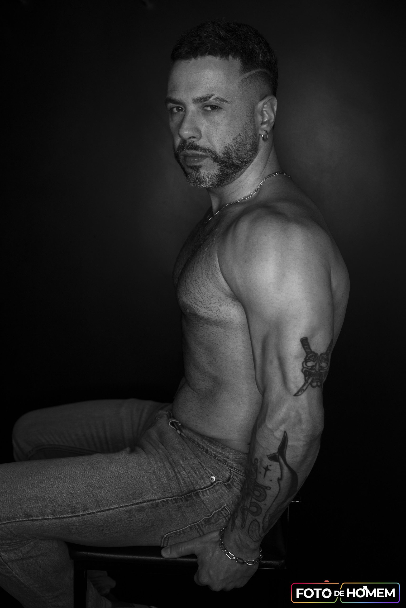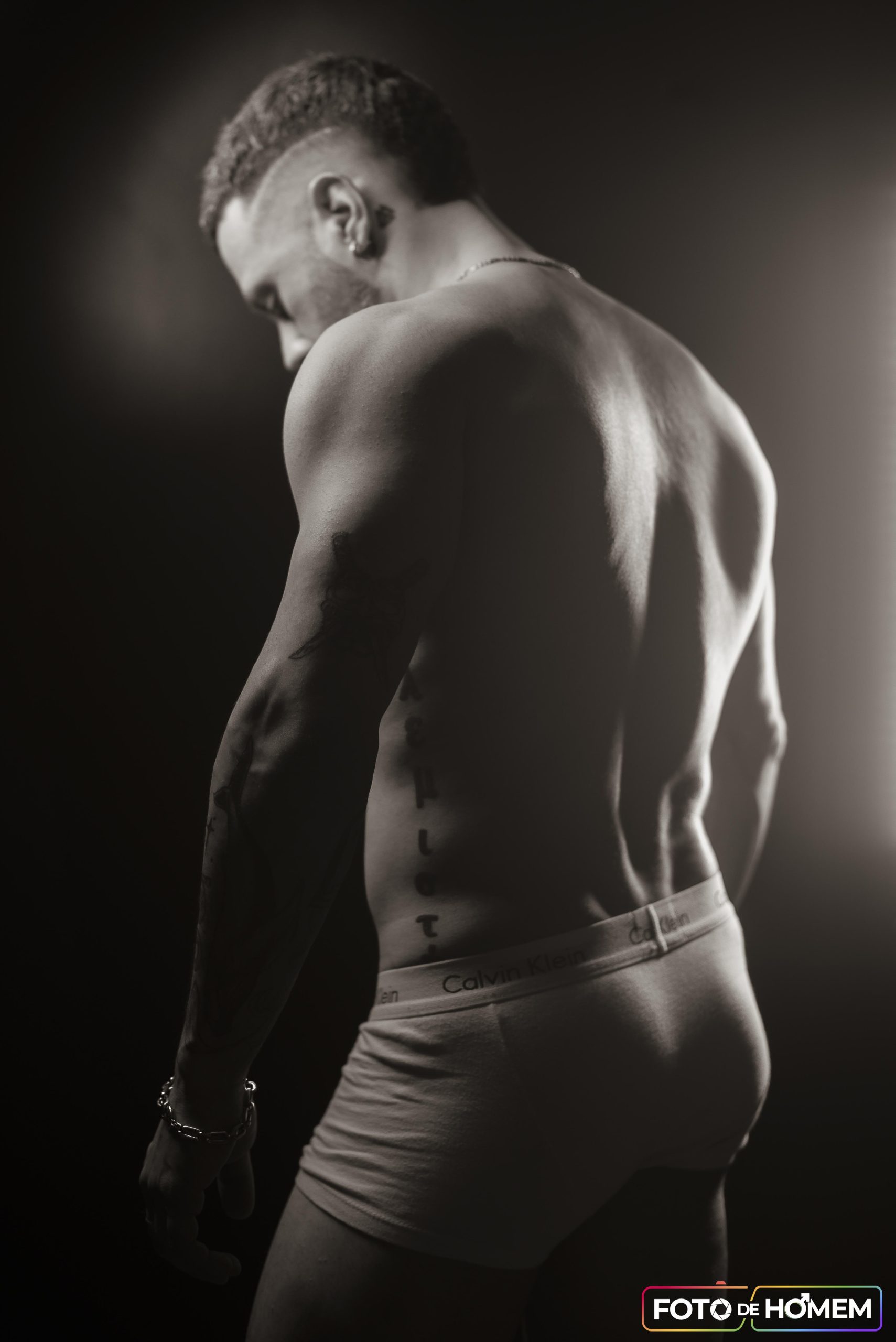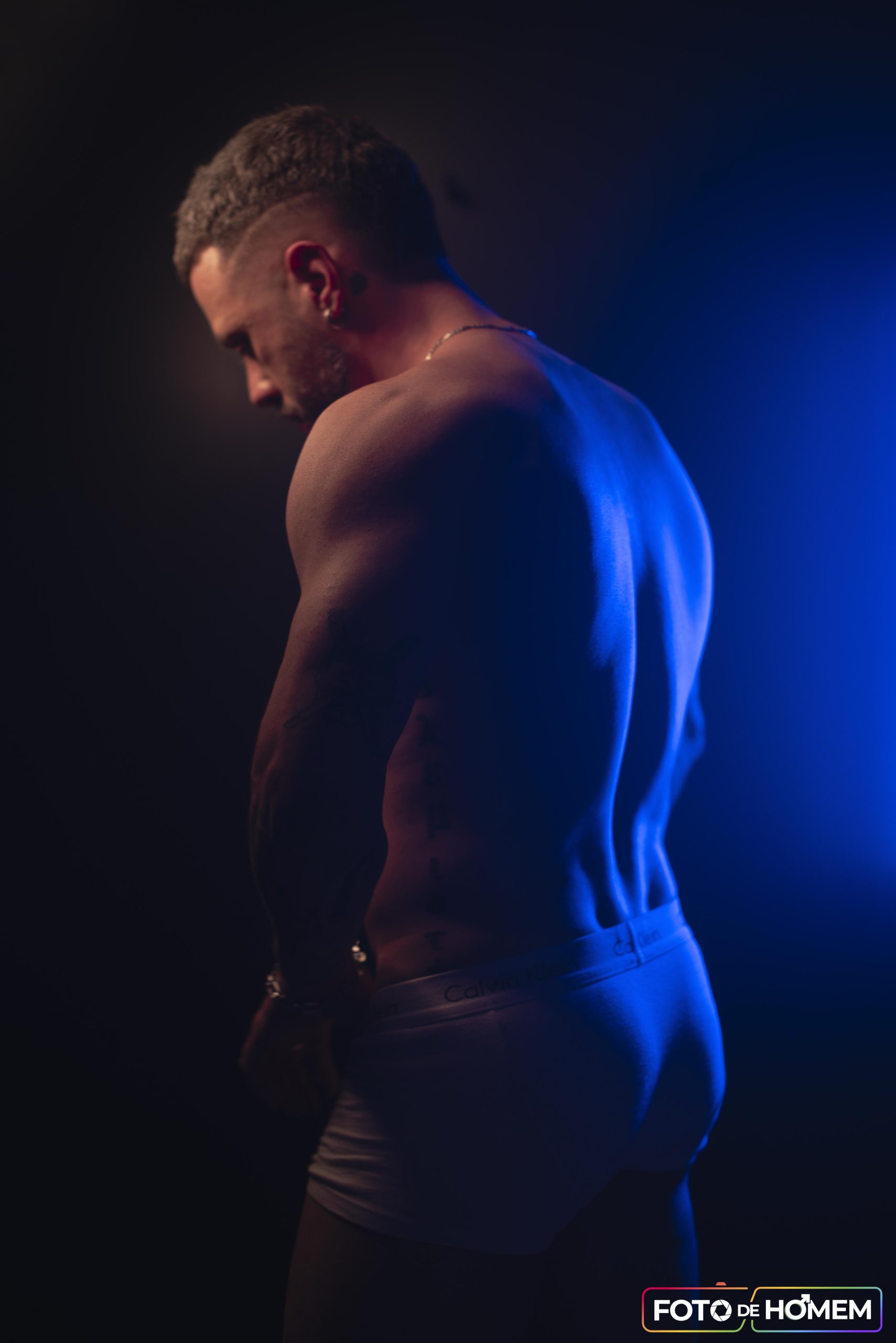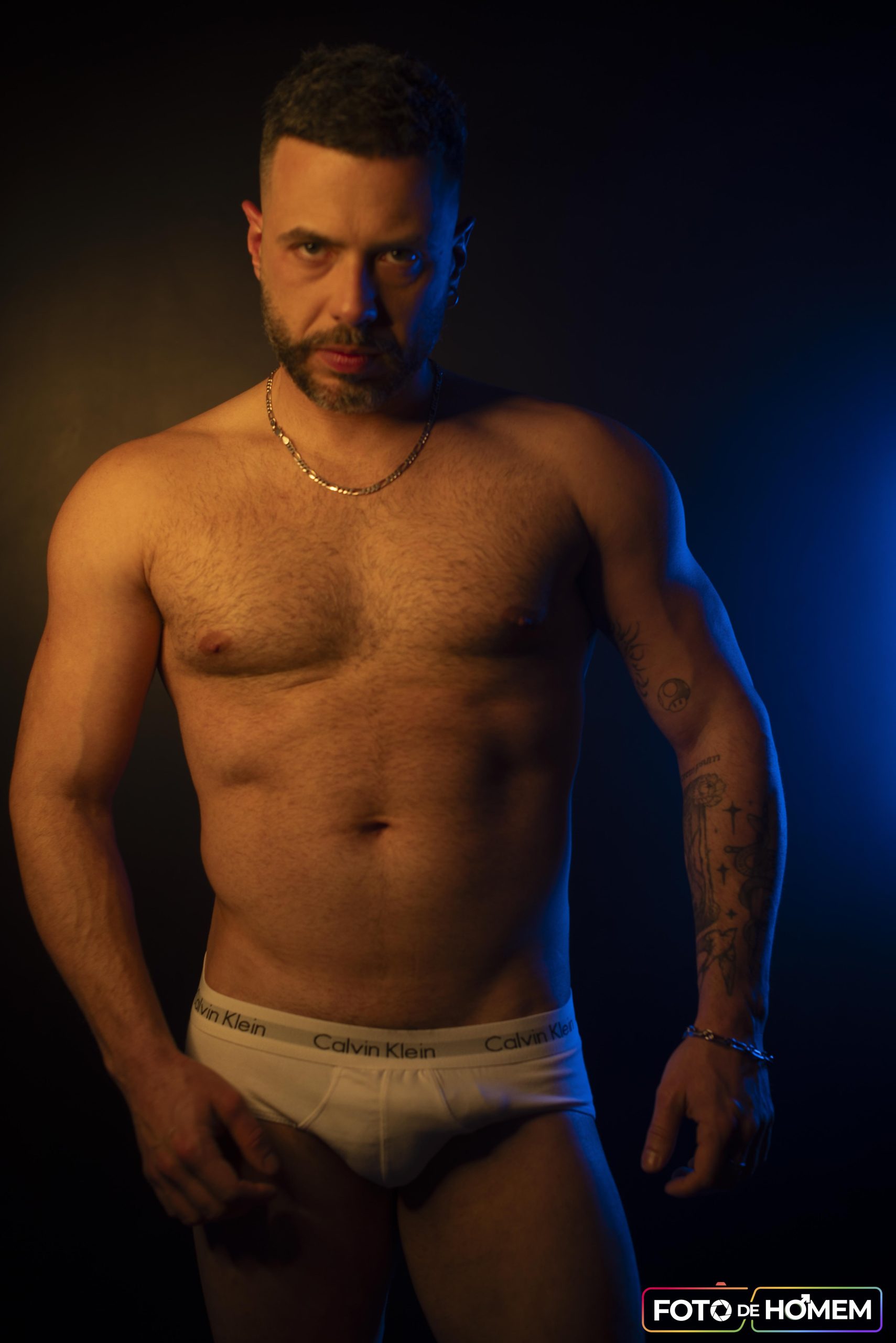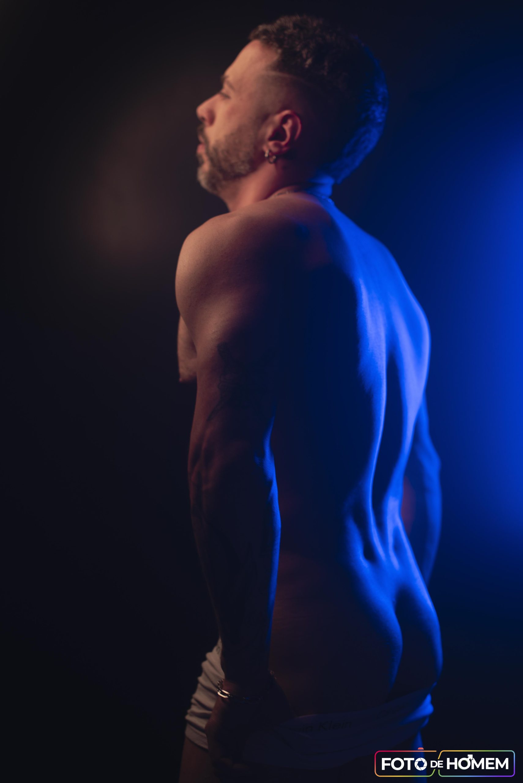 André afirma que desconstruir realidades é o primeiro passo para criar novas formas de ver e viver o mundo e por isso topou a experiência de posar nu para o Foto de Homem. “Fazer o ensaio com o Eberson foi uma vivência de entrega e autodescoberta. Mais do que posar diante da câmera, foi me permitir estar vulnerável, despido de máscaras e camadas, em um espaço de confiança criado junto a ele”.
