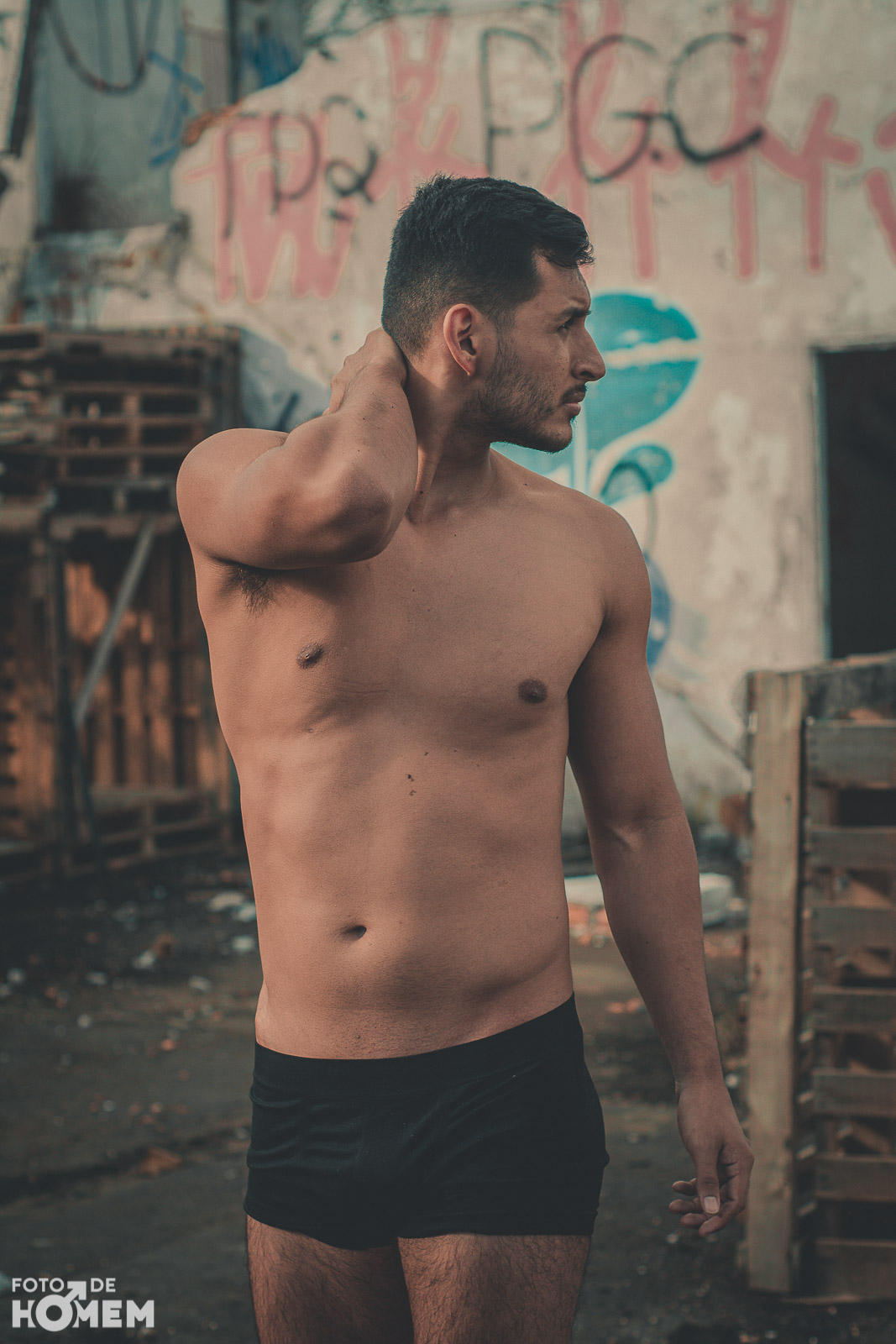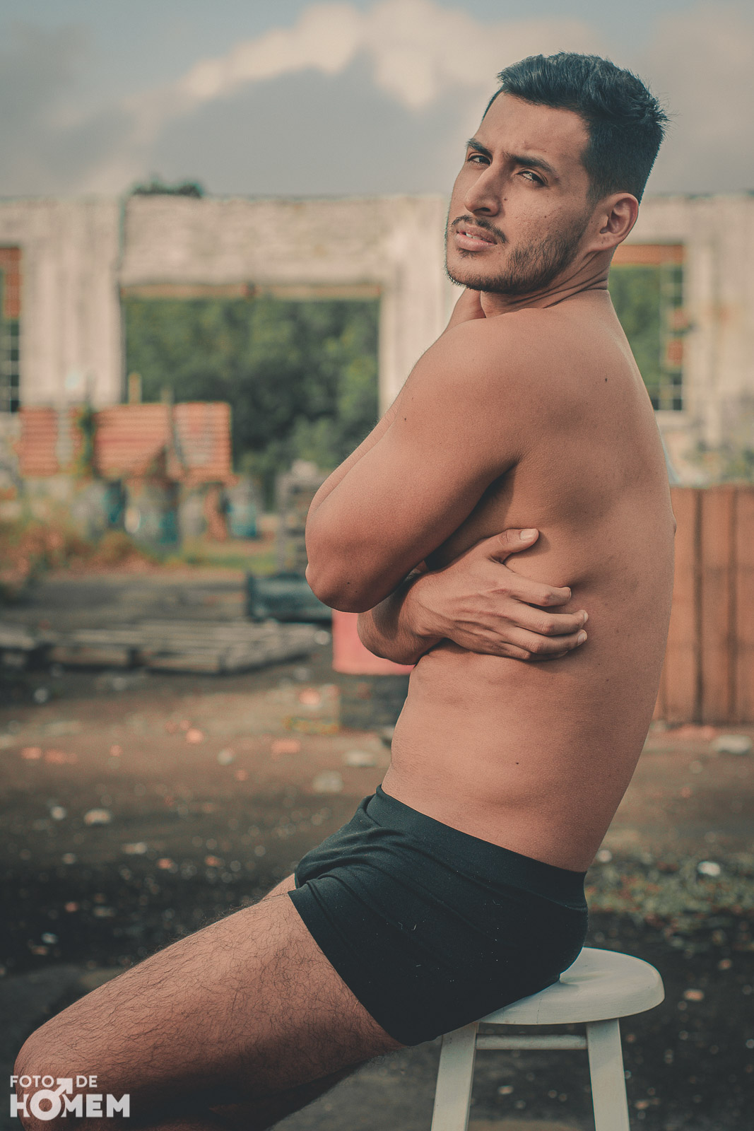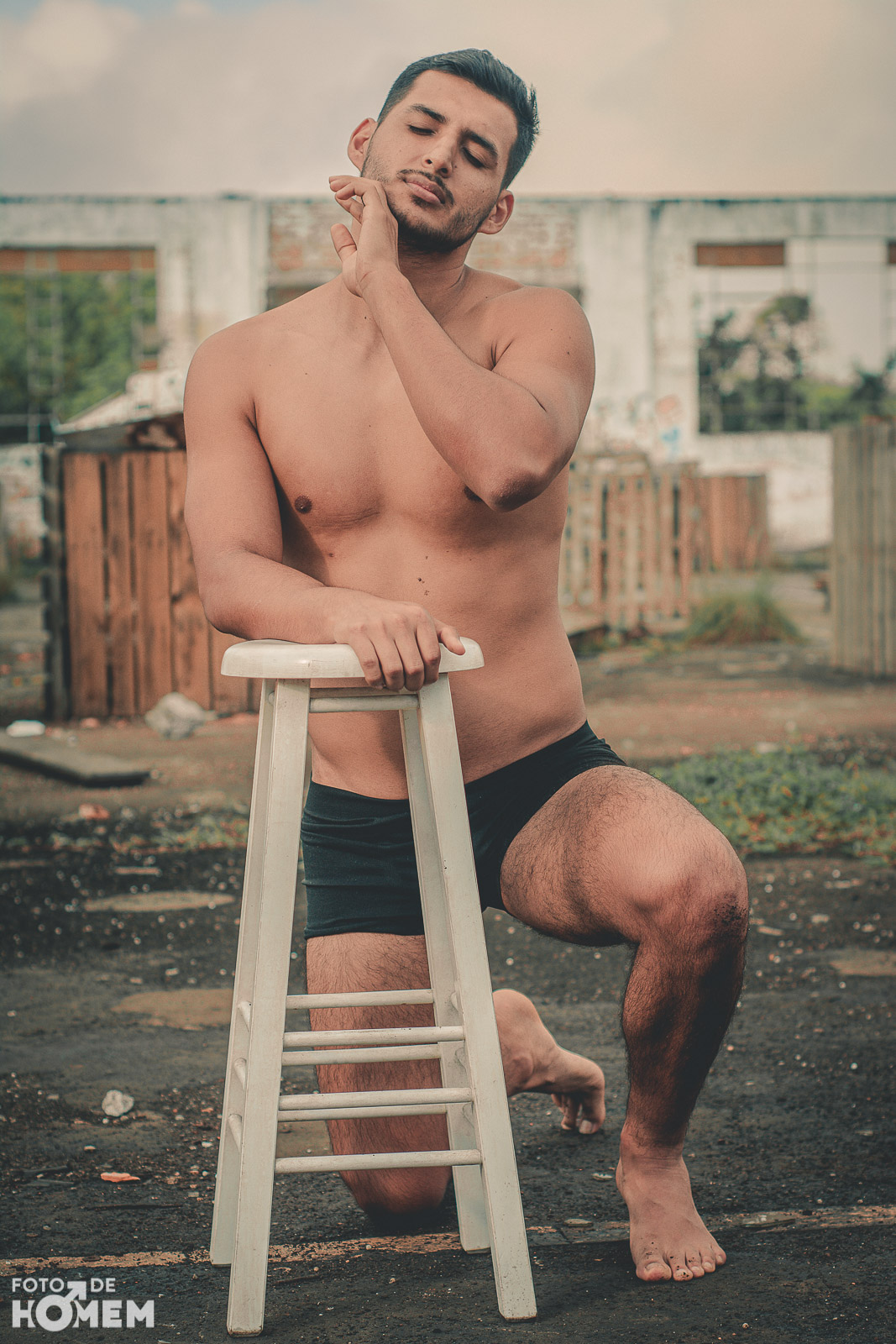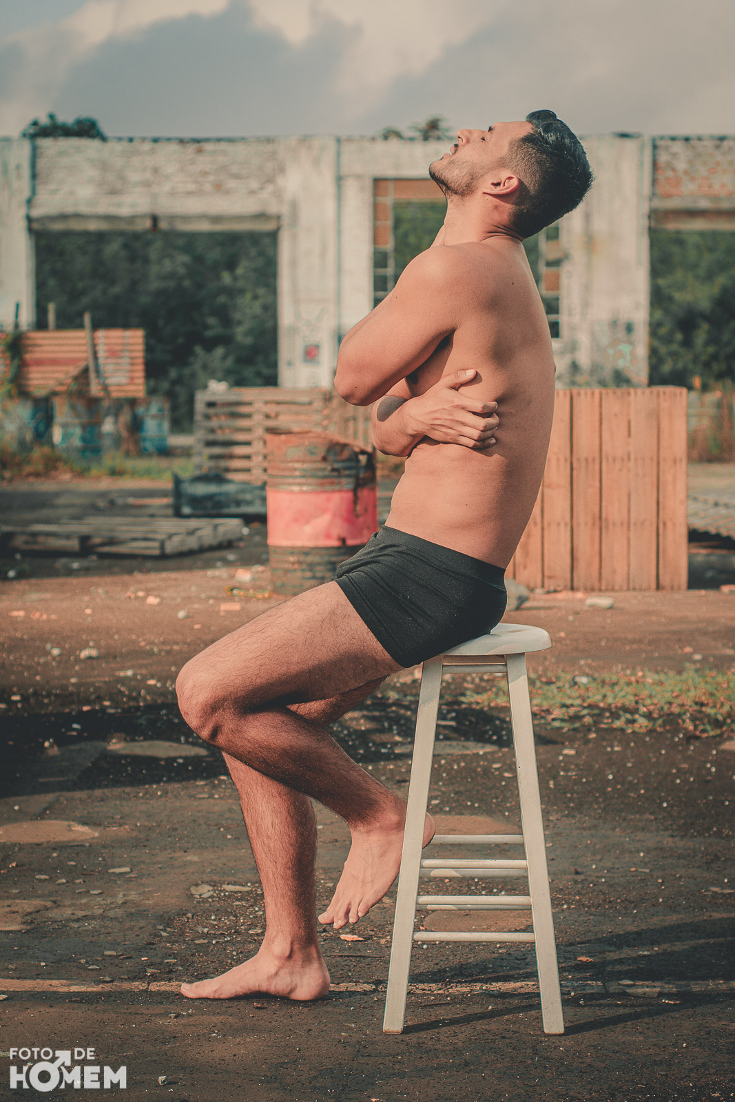 A sessão foi num galpão de uma antiga empresa em Joinville (SC), lugar bastante propício para um ensaio de nu. Caubi gostou bastante de participar de uma sessão para o site. “No início fiquei um pouco nervoso, mas o fotógrafo Eberson foi levando a sessão tranquilamente e me passou bastante segurança”, relata o jovem.
