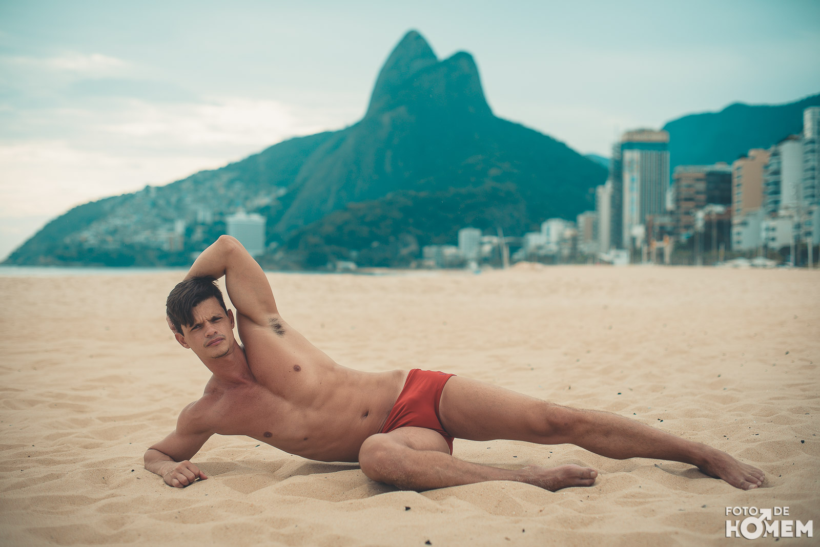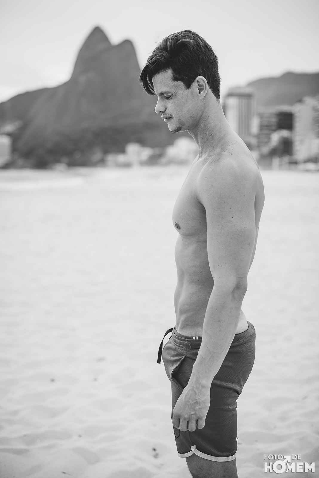 Ele estreia a série de ensaios feitas no Rio de Janeiro. Nas próximas semanas vocês terão a oportunidade de desnudar os corpos que frequentam as praias cariocas, com exclusividade para o Foto de Homem.