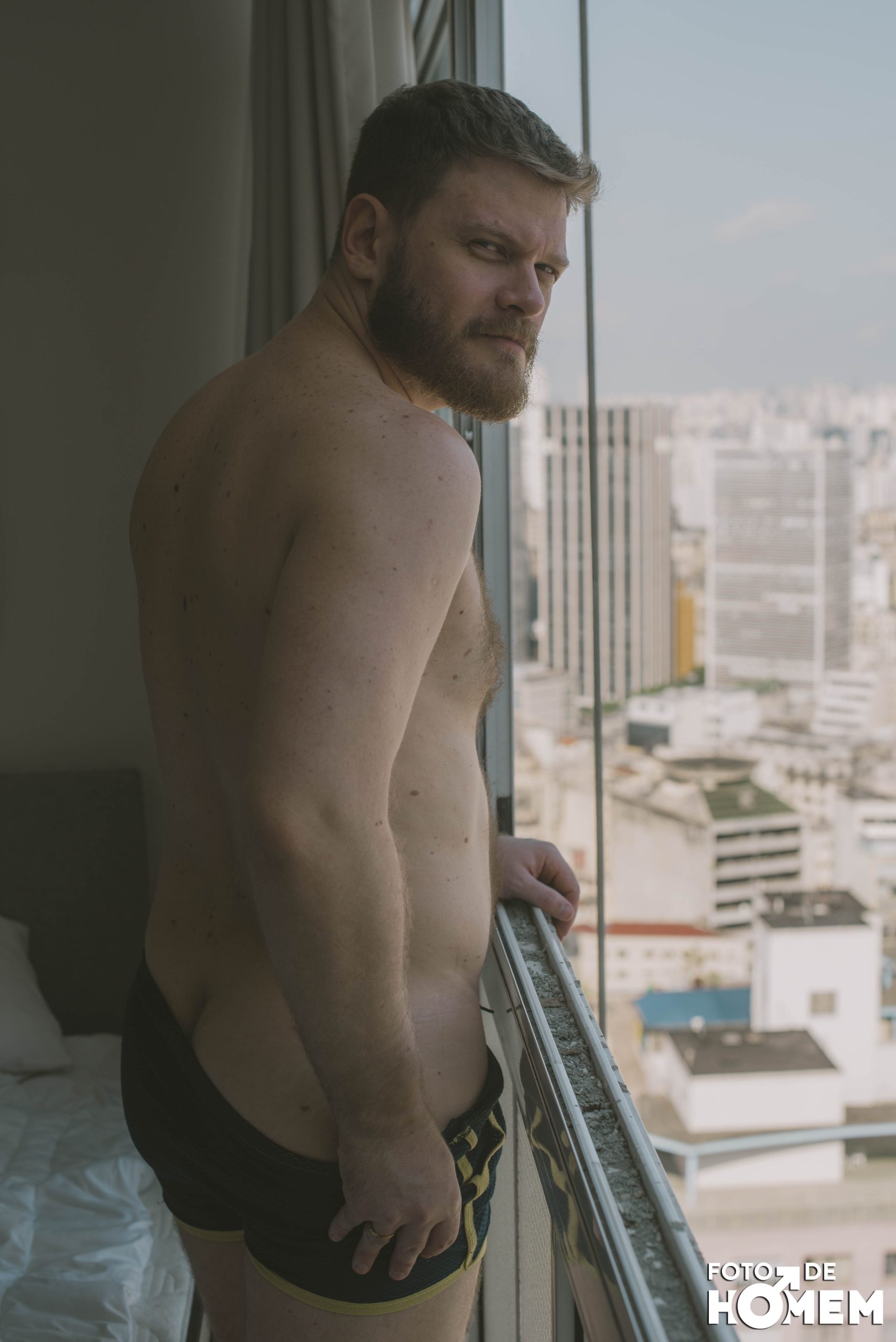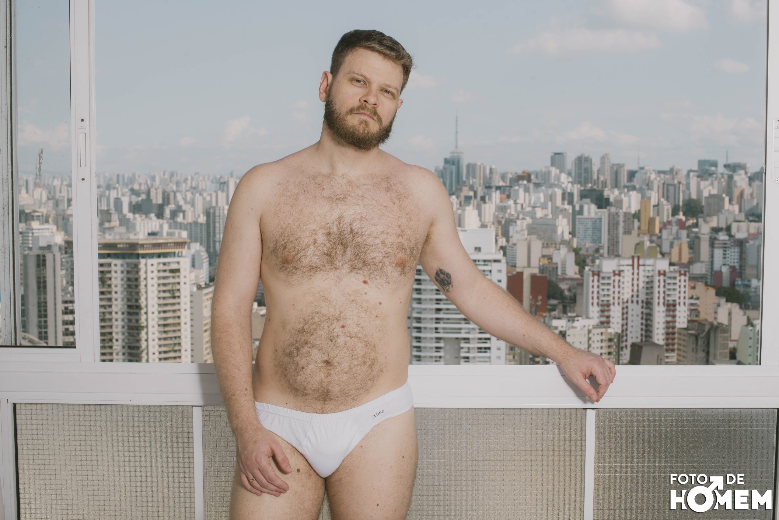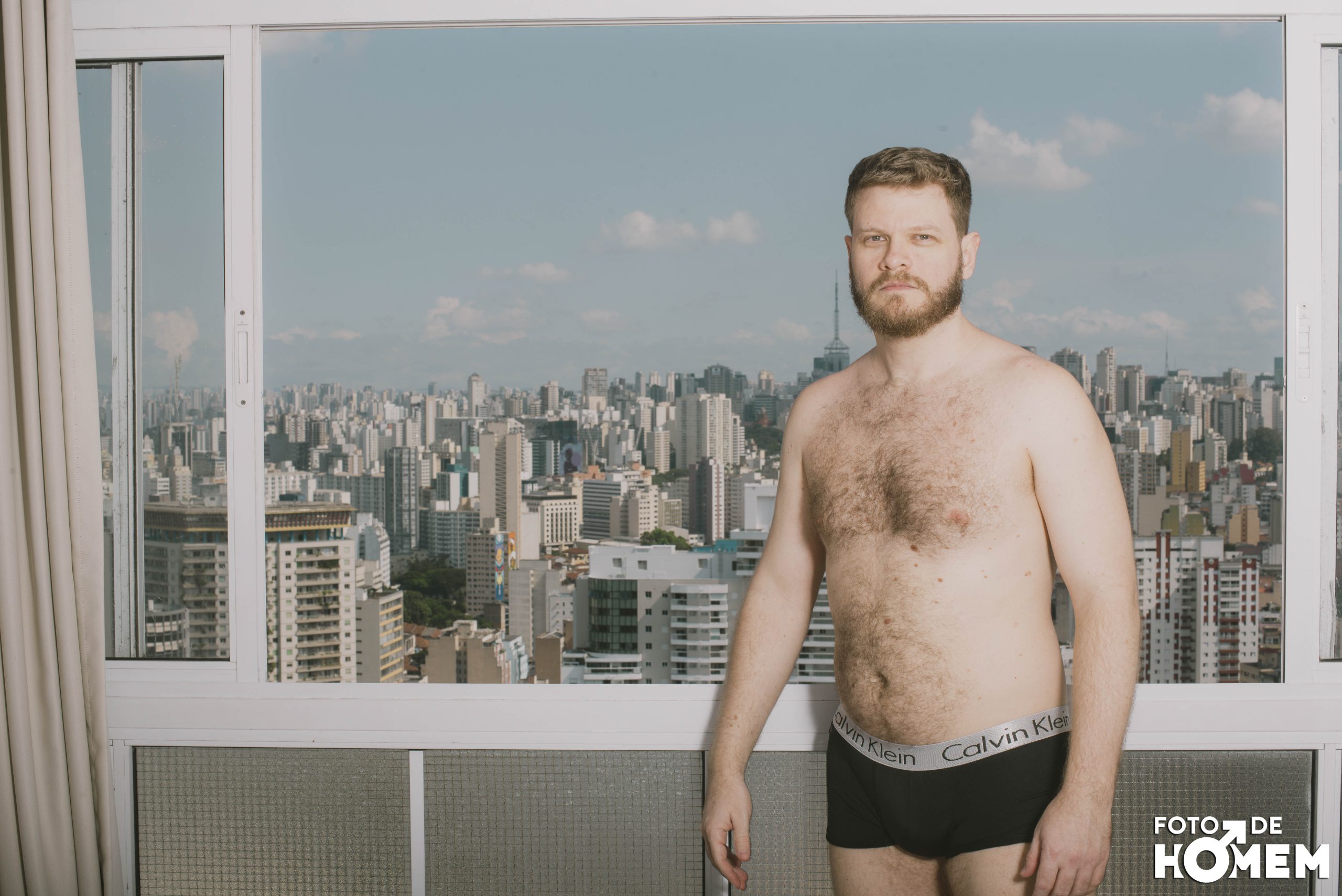 O ensaio de hoje é com o Felipe, fotografado em São Paulo, no edifício Copan, em fevereiro. Ele, que já foi controlador de tráfego aéreo, revelou toda a sua nudez para o Foto de Homem.