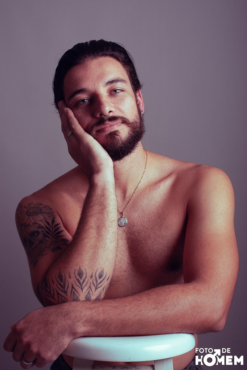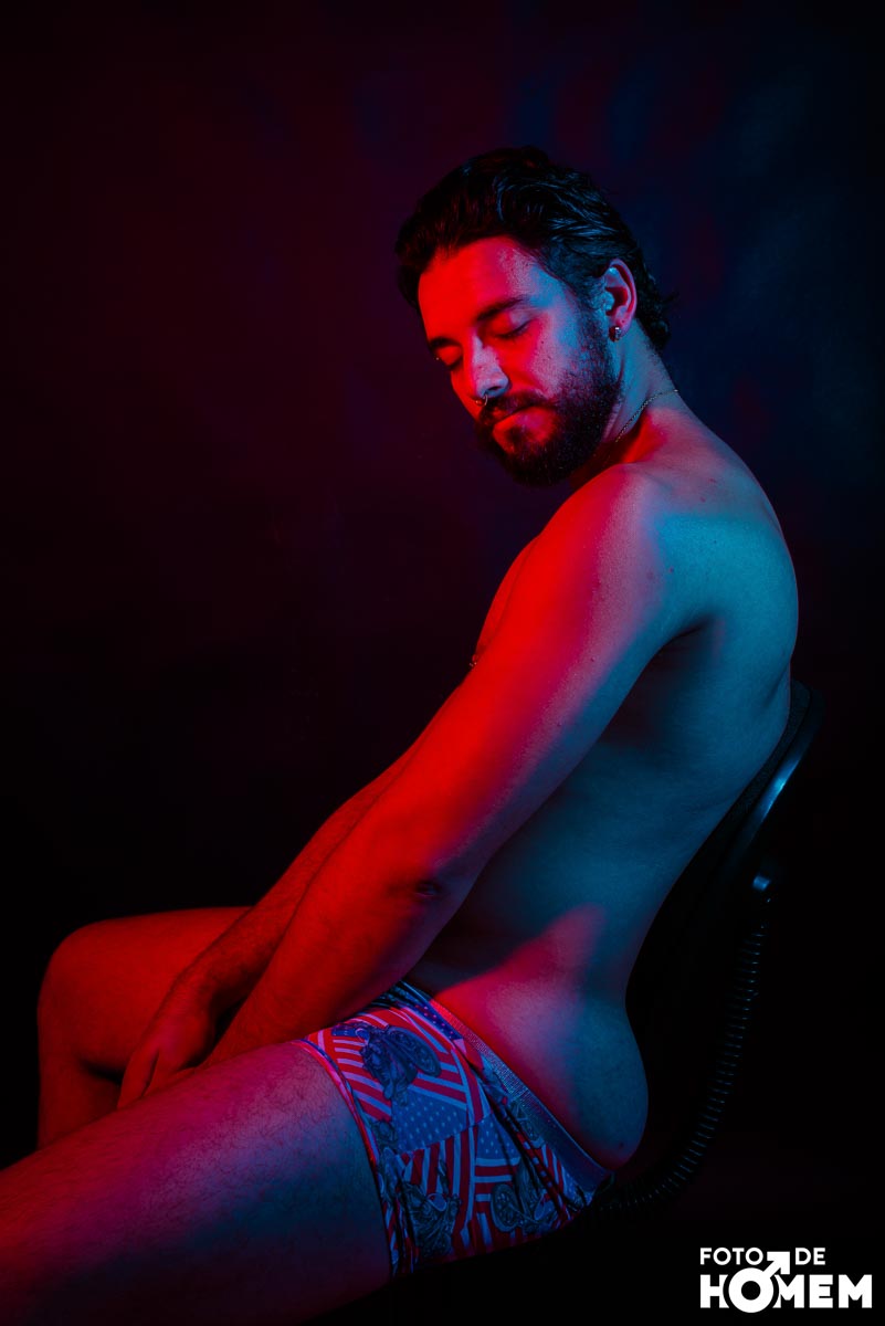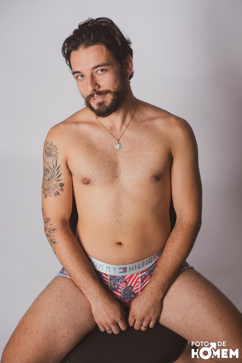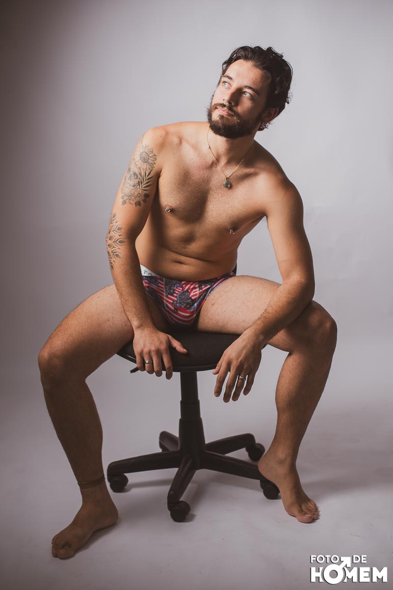 O ensaio desta semana é com o Elon, fotografado no estúdio do Foto de Homem em Joinville (SC), em julho de 2023.