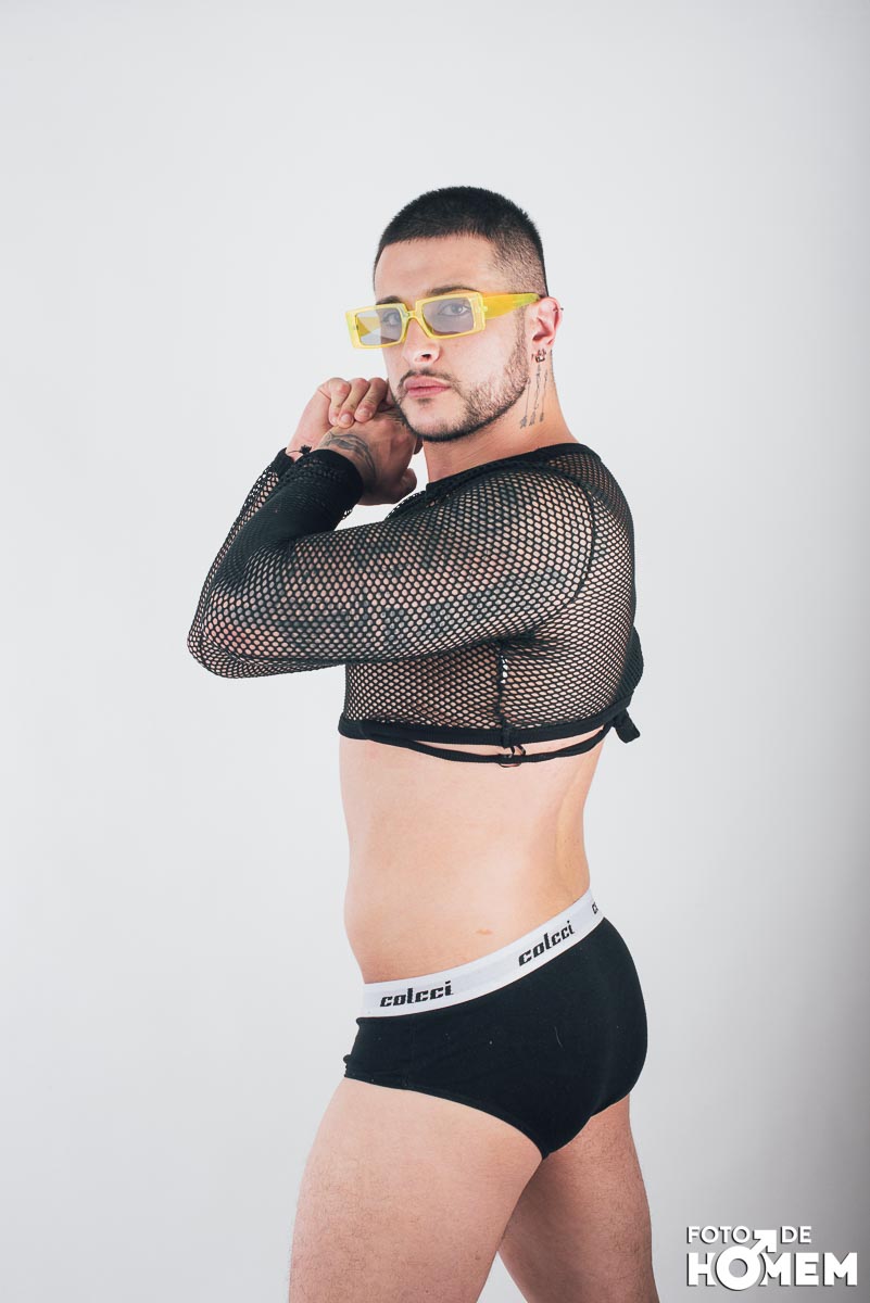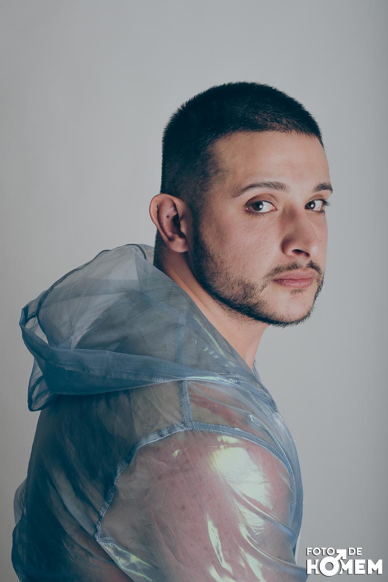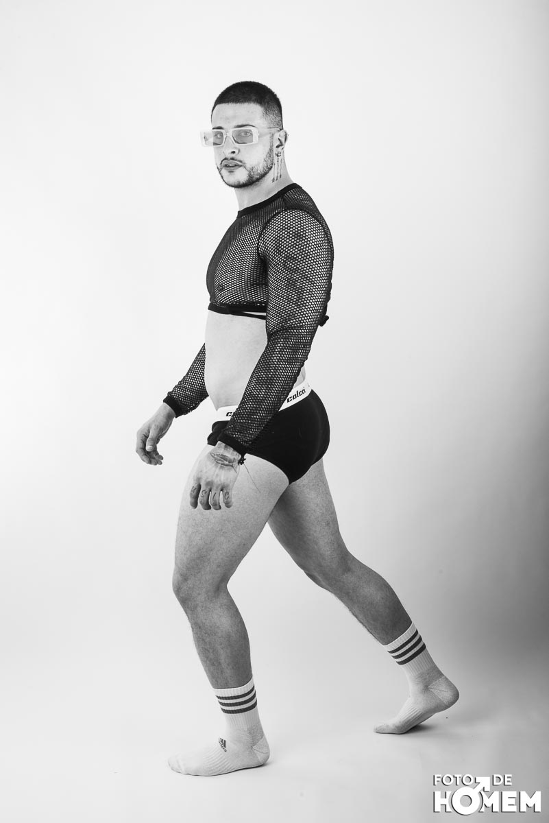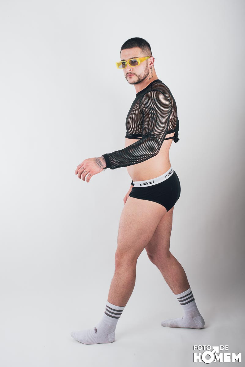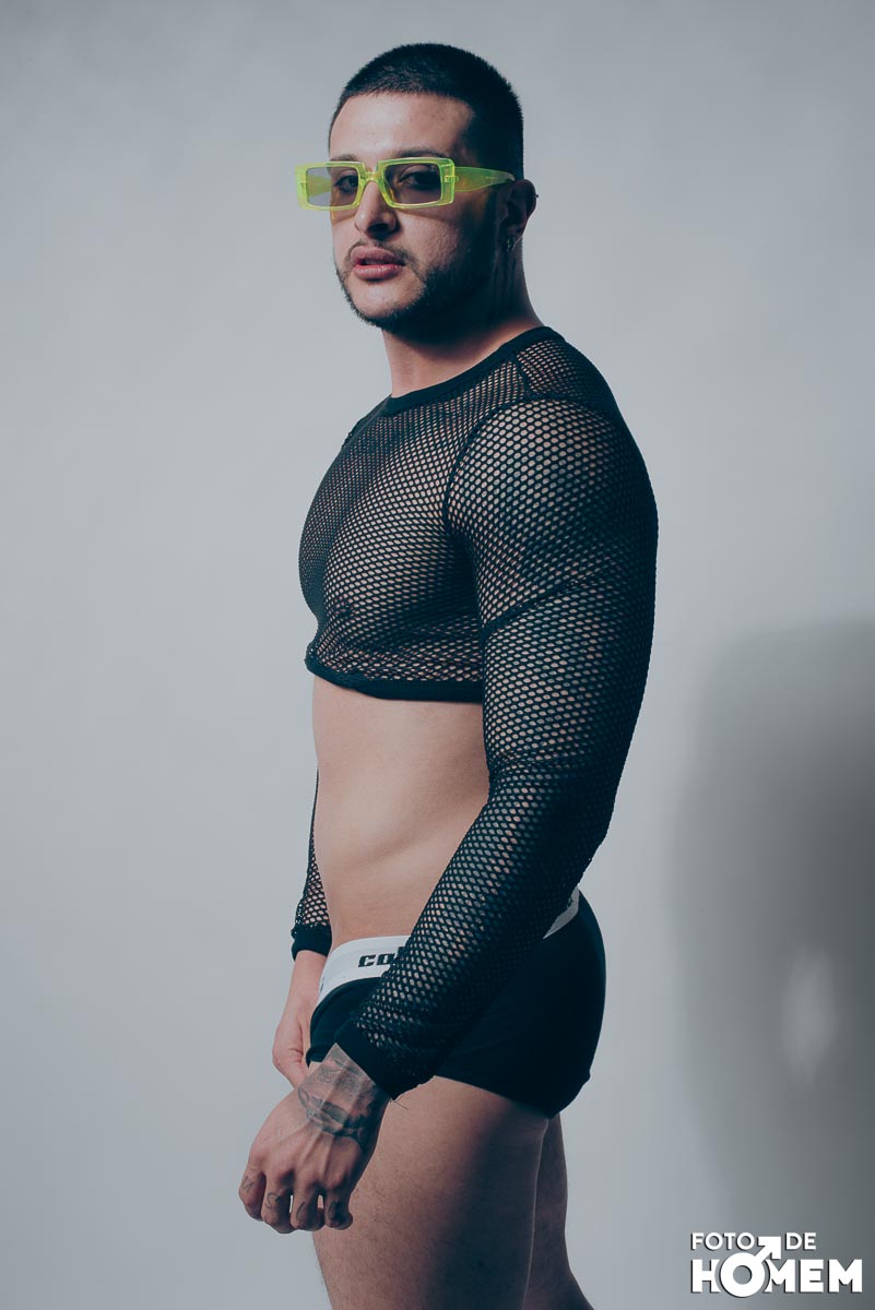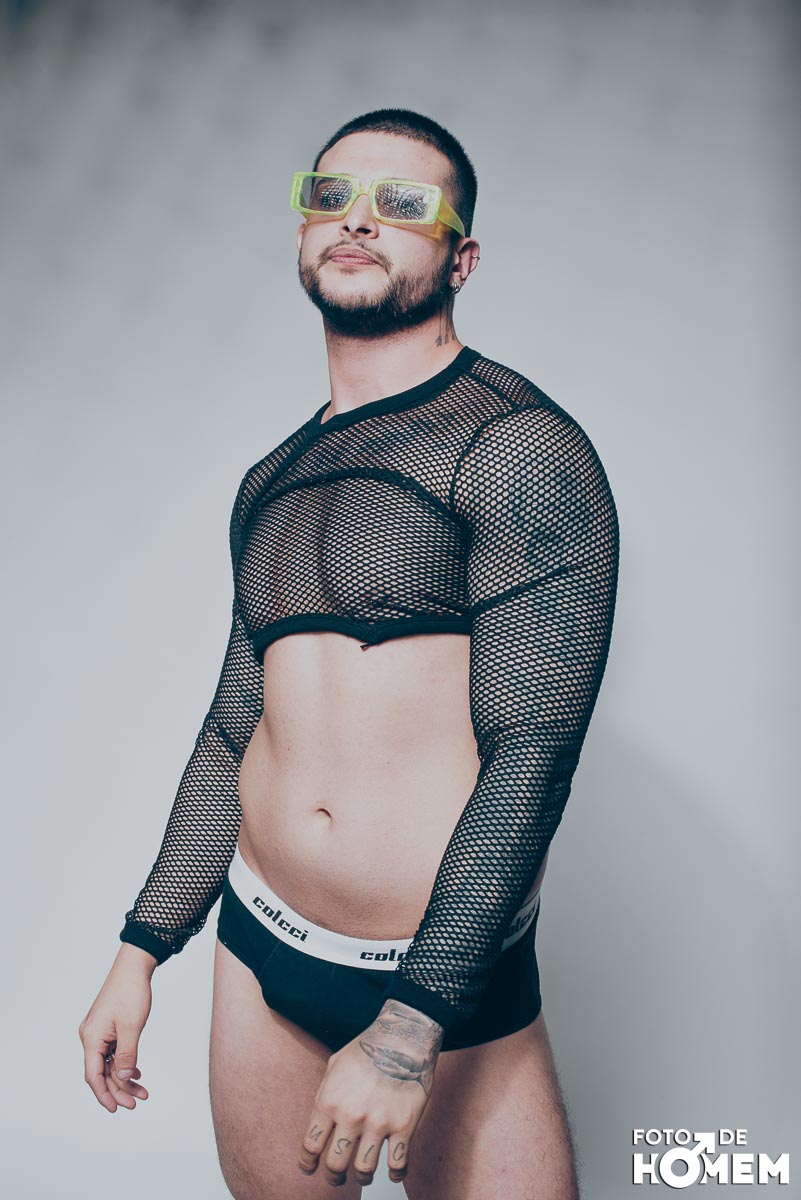 O ensaio desta semana é com o DJ Bruno Vozz, fotografado no estúdio do Foto de Homem em Joinville (SC), em junho de 2023.
