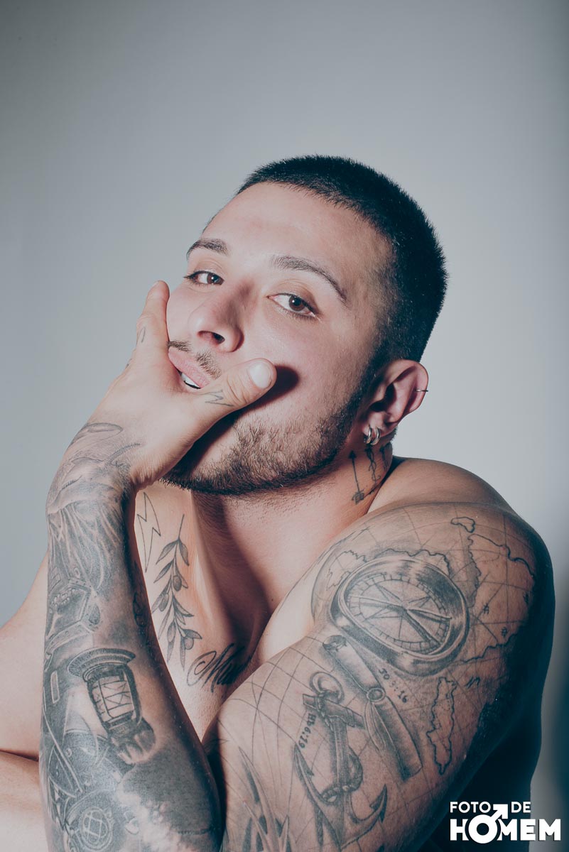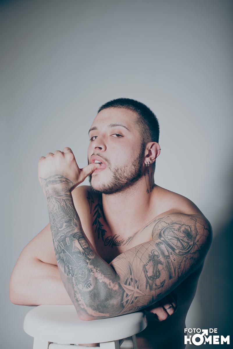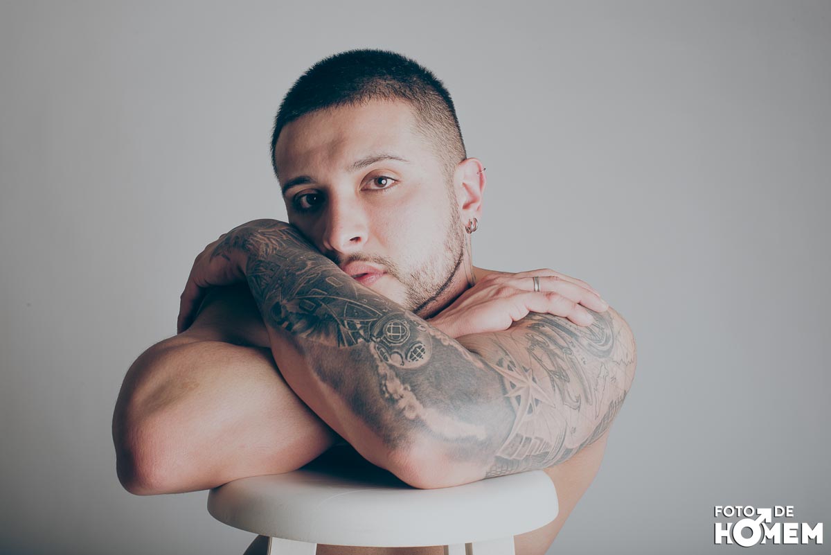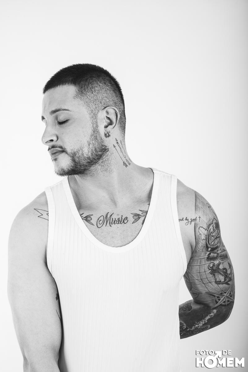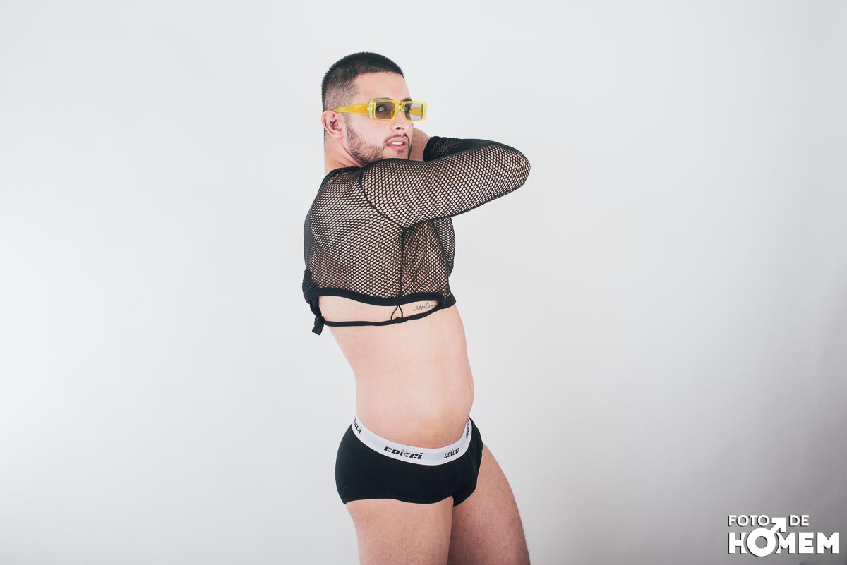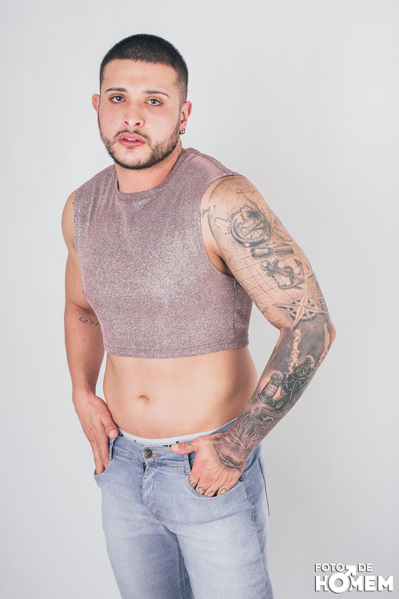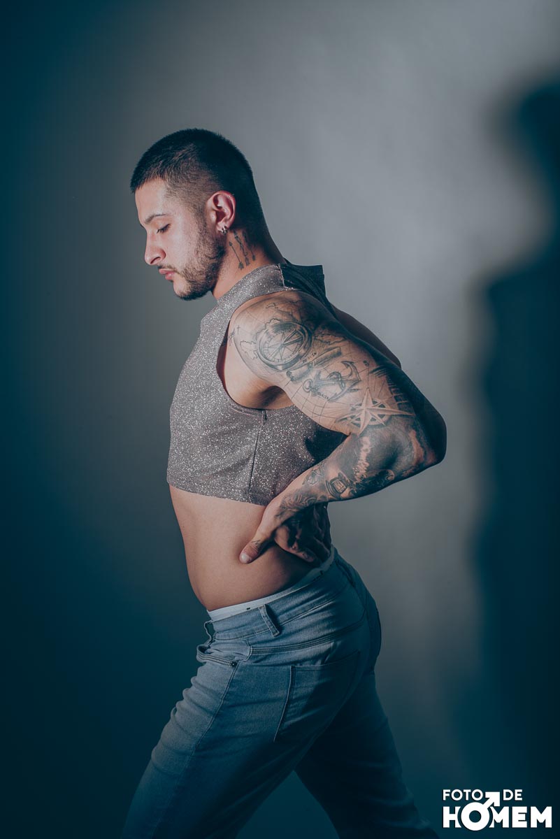 O ensaio desta semana é com o DJ Bruno Vozz, fotografado no estúdio do Foto de Homem em Joinville (SC), em junho de 2023.