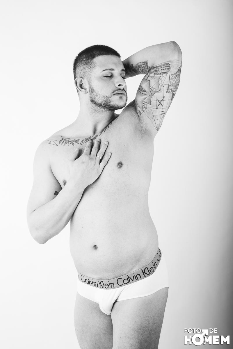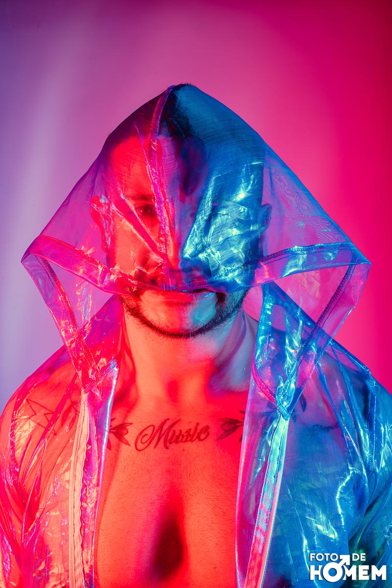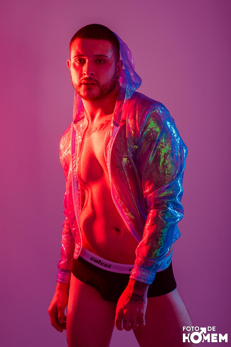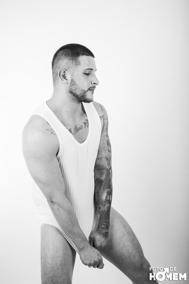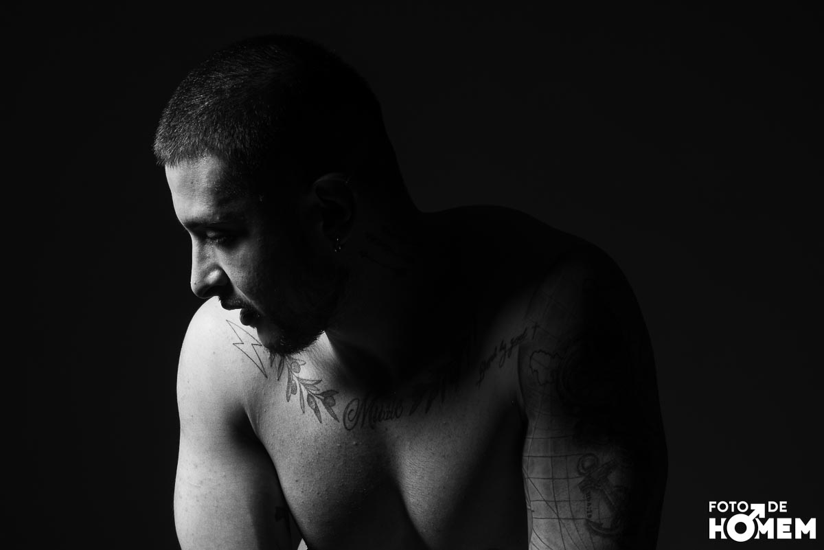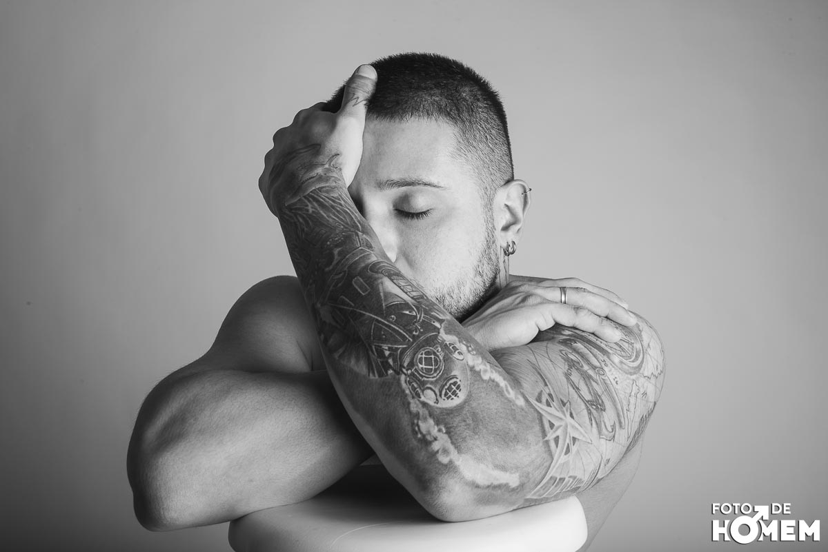 O ensaio desta semana é com o DJ Bruno Vozz, fotografado no estúdio do Foto de Homem em Joinville (SC), em junho de 2023.